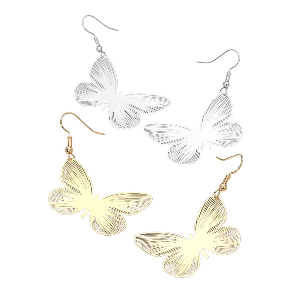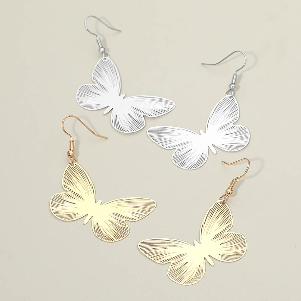 • Delicate butterfly drop earrings designed with finely etched wing details for a graceful, lightweight look. Add movement and charm to everyday outfits, vacations, events, and special occasions. Easy to wear and giftable, they bring a feminine, nature-inspired touch to modern accessory collections.