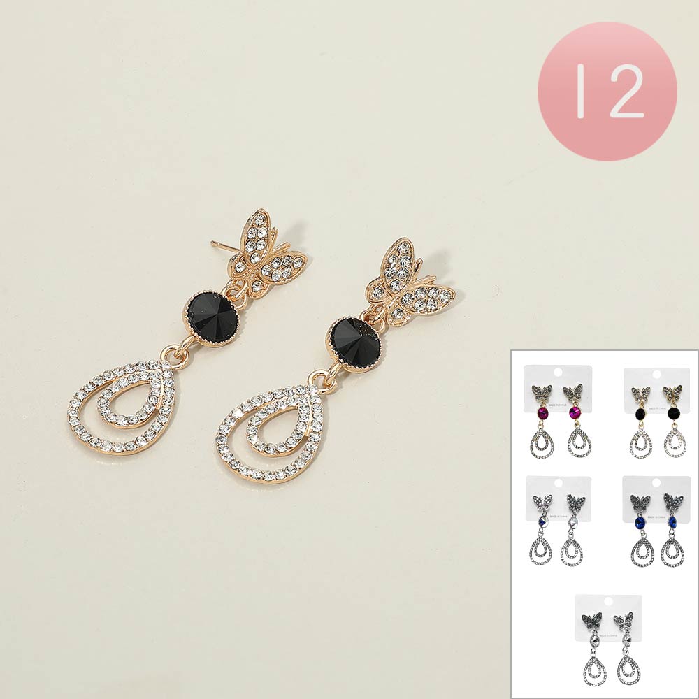 Details • Size : 0.8" X 2" • Post Back • Elegant drop earrings featuring a delicate butterfly stud paired with a layered teardrop silhouette and faceted accent. Designed for graceful movement and refined sparkle, they are lightweight and comfortable. Ideal for weddings, parties, formal events, and gifting with timeless appeal.