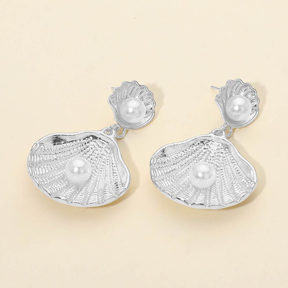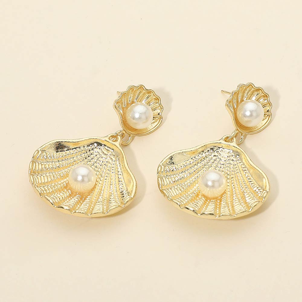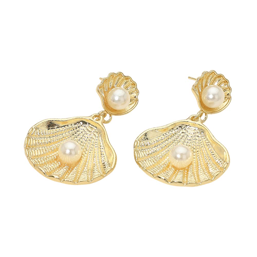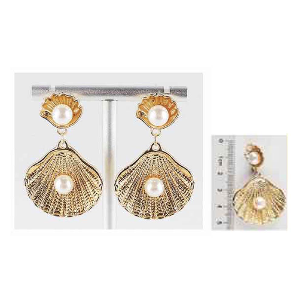 Details • Size : 1.3" X 2" • Post Back • These shell drop earrings feature a layered seashell design with a soft rounded accent that adds depth and movement. Inspired by coastal style, they are perfect for summer outfits, beach vacations, resort wear, or everyday looks, offering a graceful statement that blends playful charm with polished elegance.