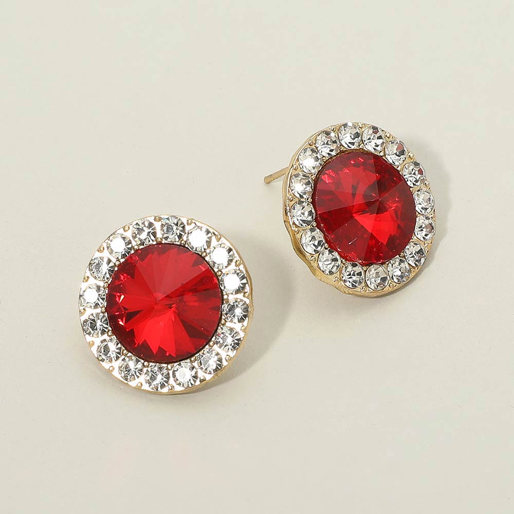 Details • Size : 0.8" X 0.8" • Post Back • Classic round stud earrings designed with a faceted center accent and a sparkling halo for timeless appeal. Comfortable and easy to wear, they suit everyday outfits, work looks, events, and special occasions. Ideal for gifting, accessorizing, and adding a polished finish to any jewelry collection.