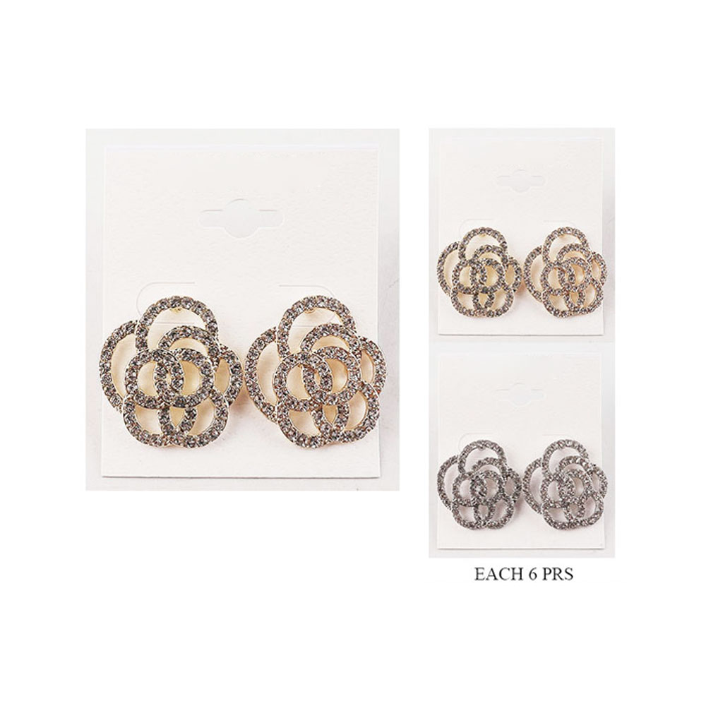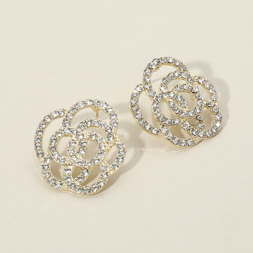 Details • Size : 1" X 1.1" • Post Back • These rhinestone rose outline stud earrings feature an elegant openwork floral design encrusted with sparkling stones for a refined, radiant effect. Perfect for adding a romantic touch to both everyday and evening styles, they capture timeless elegance with a modern, feminine flair.