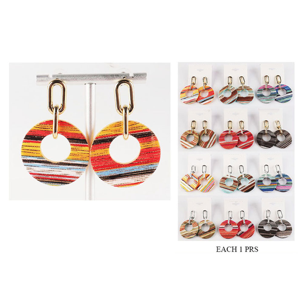 Details • Size : 1.6" X 2.5" • Post Back • These striped circle link dangle earrings feature a chic circular drop paired with a bold metal link accent. The subtle striped pattern adds a modern artistic flair, making them a perfect statement piece for both casual and stylish occasions with a touch of contemporary charm.