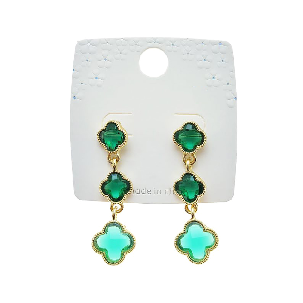 Details • Size : 0.6" X 2" • Post Back • Elegant dangling earrings featuring multi quatrefoil accents arranged in a delicate linked design. Perfect for adding a touch of charm to both casual and dressy looks, these earrings offer a refined style that makes a beautiful addition to any jewelry collection.