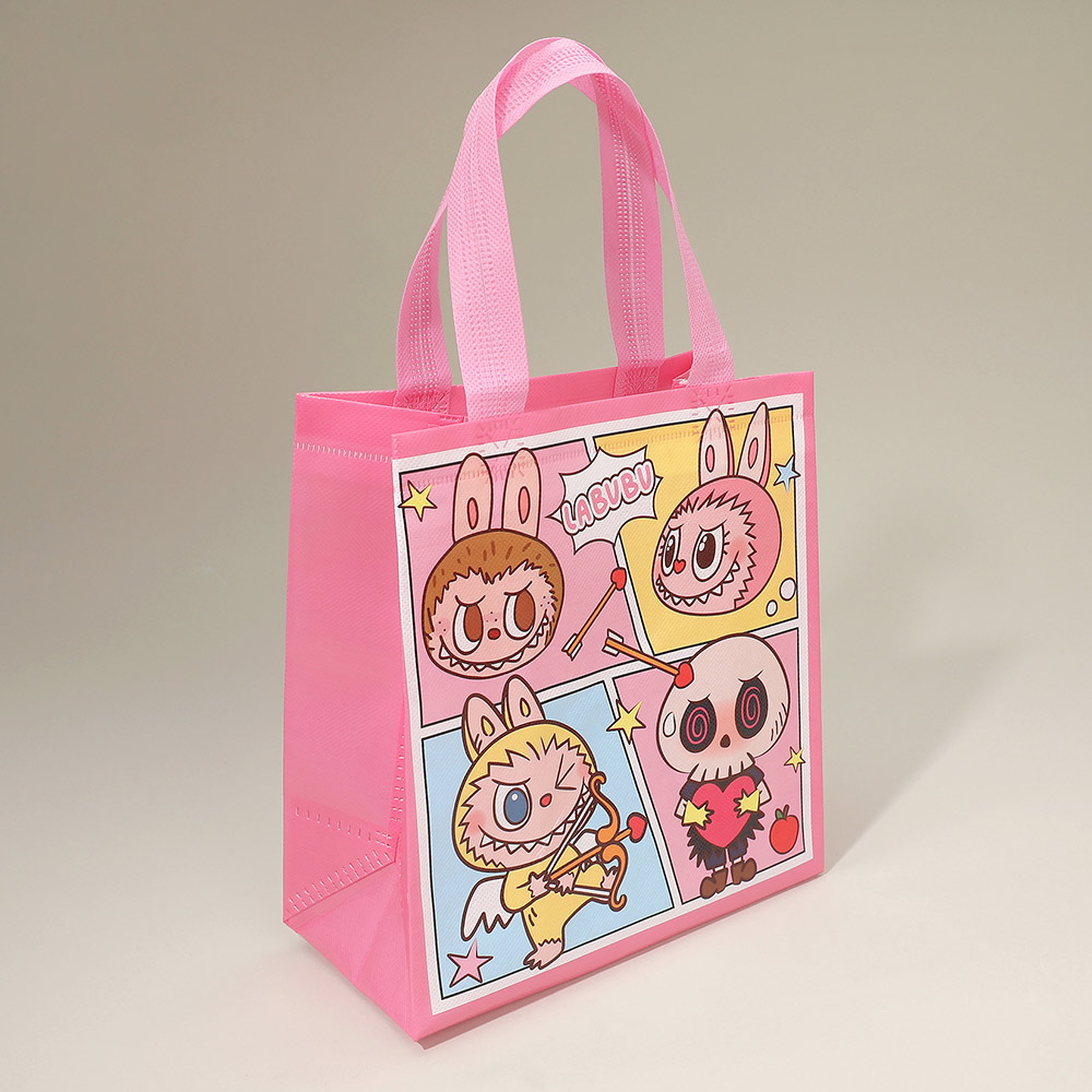 Details • Size : 8.7" X 9" X 4.3" • Adorable reusable tote bag featuring charming cartoon characters and playful prints. Perfect for carrying gifts, books, or daily essentials, this lightweight bag combines practicality with fun design, making it a delightful choice for kids, parties, or casual everyday errands.