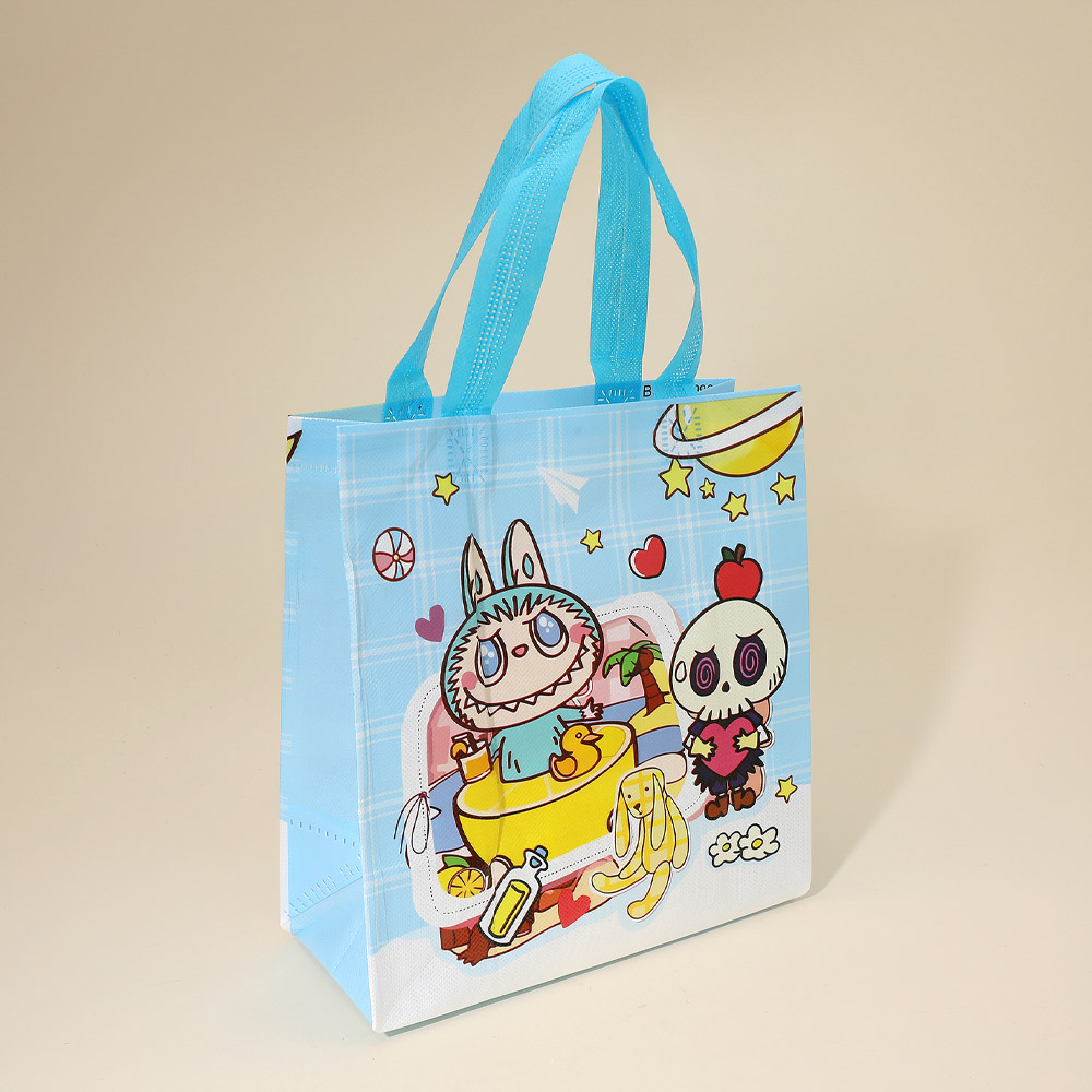 Details • Size : 8.6" X 9" X 4.3" • Top Handle Size : 5" L • A reusable gift tote bag featuring playful cartoon designs, perfect for party favors, gift wrapping, shopping, or everyday carry. Lightweight and roomy for treats or small items, adding cheerful style to birthdays, events, and celebrations.
