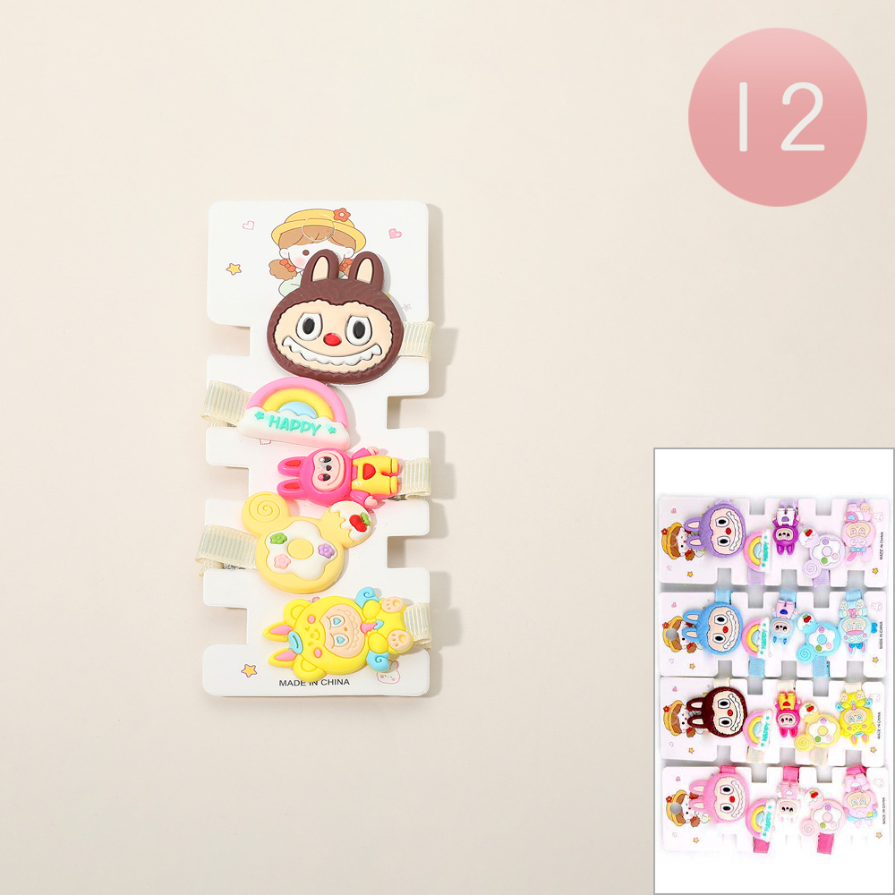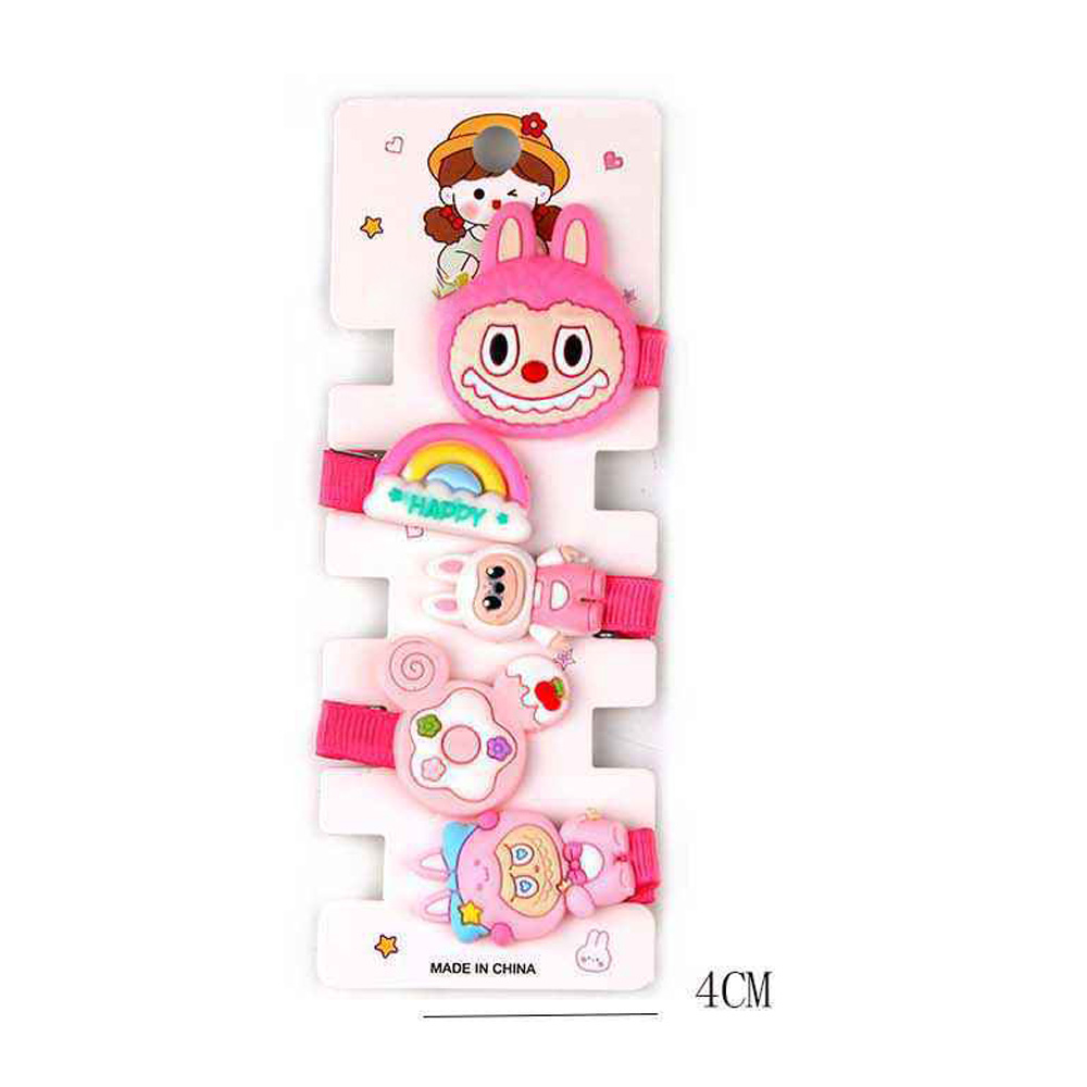 Details • Size : 0.75" - 1.5" L • Playful 5-piece cartoon hair clip set featuring adorable characters, rainbows, and cute designs. Perfect for kids, teens, and anyone who loves fun hairstyles. Lightweight, durable, and easy to wear, these clips add a cheerful touch to casual looks, school outfits, or playdates.