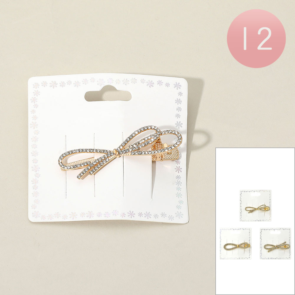 12PCS - Rhinestone Paved Bow Alligator Snap Hair Clips