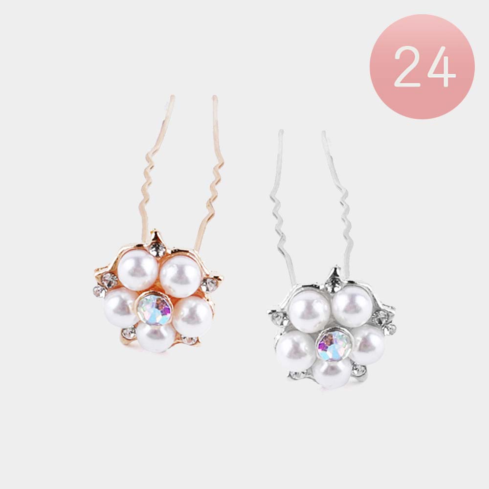 24PCS - Pearl Stone Embellished Floral Hair Comb Pins