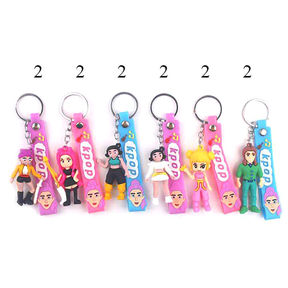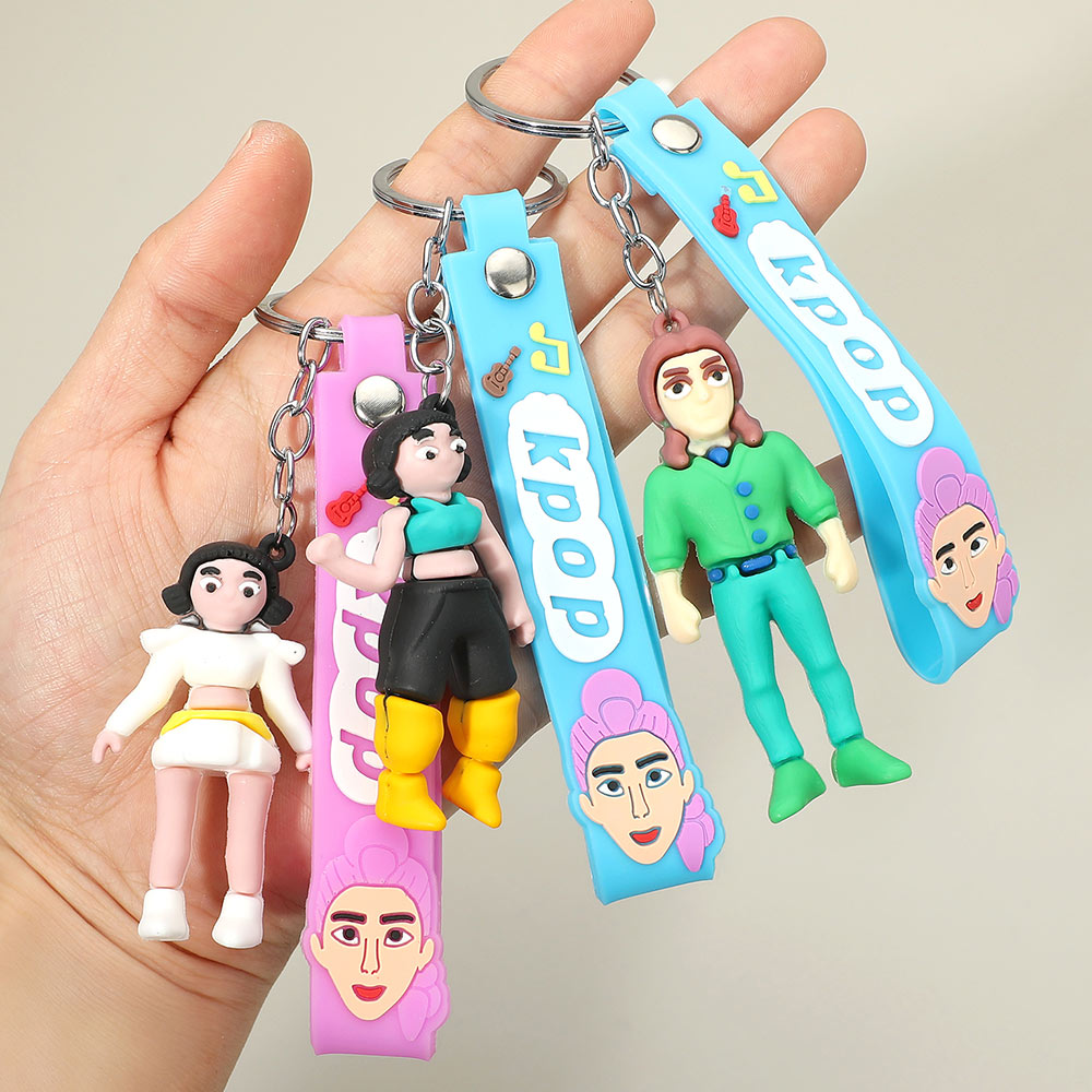 Details • Size : 5" L, 1.25" X 2.5" • K-pop demon hunters character figure strap keychain featuring playful character silhouettes with flexible hanging figures and bold logo detailing. Designed for keys, backpacks, and totes, this fan-inspired accessory adds personality to everyday carry and is ideal for pop culture displays, gifting programs, and trend-focused retail assortments.