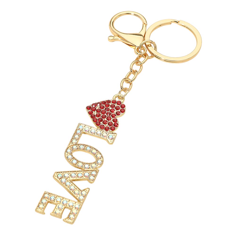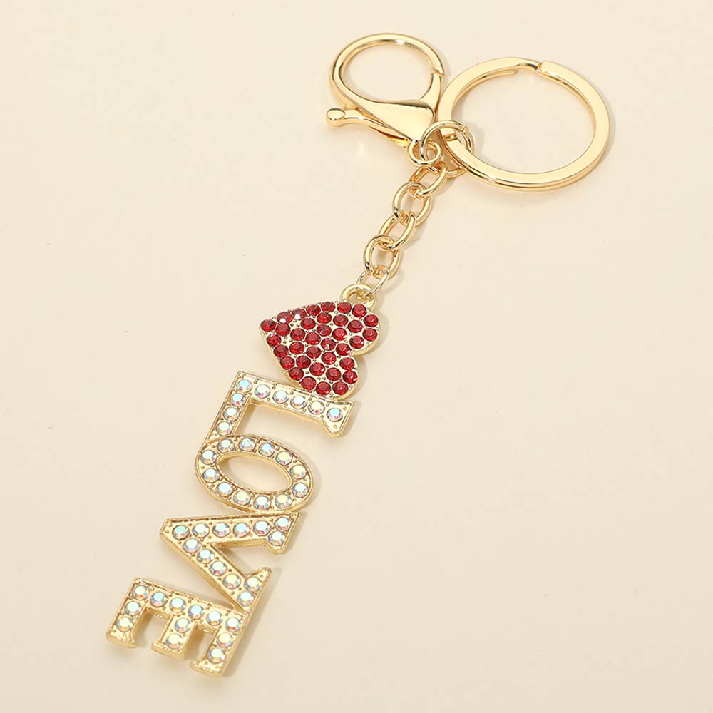 • Love letter charm keychain featuring sparkling rhinestone accents and a heart detail. Designed with a secure keyring and lobster clasp for easy attachment to keys, handbags, or backpacks. Perfect for gifting, boutique displays, romantic-themed collections, party favors, and everyday accessory styling.