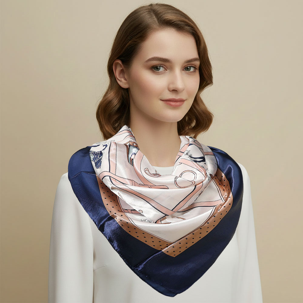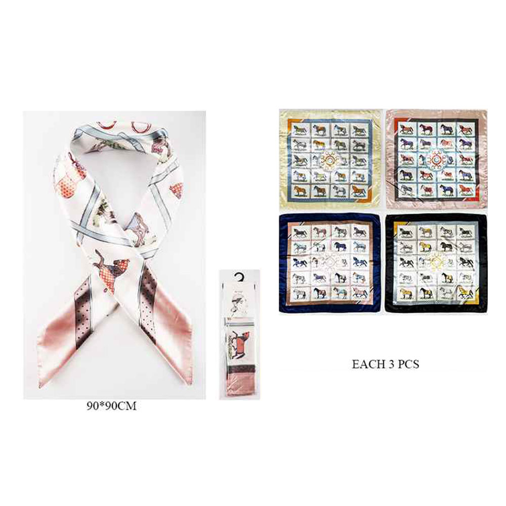 Details • Size : 36" X 36" • Material : 100% Polyester • Elevate everyday outfits with a versatile square scarf featuring intricate patterned detailing. Designed for easy styling at the neck, hair, handbag, or wrist, this timeless accessory adds a polished accent to both casual looks and dressier ensembles.
