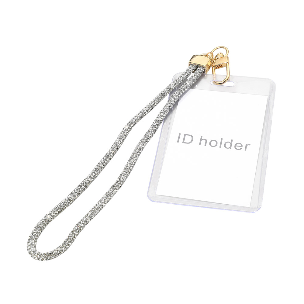 • Add a touch of sparkle to your workday with the Sparkling Lanyard ID Holder. Featuring a chic rhinestone strap and clear card sleeve, this fashionable holder keeps your ID, badge, or access card secure and easily accessible while complementing your professional style effortlessly.