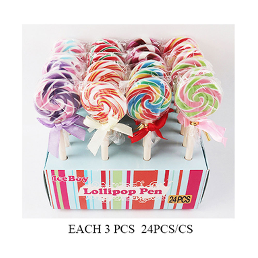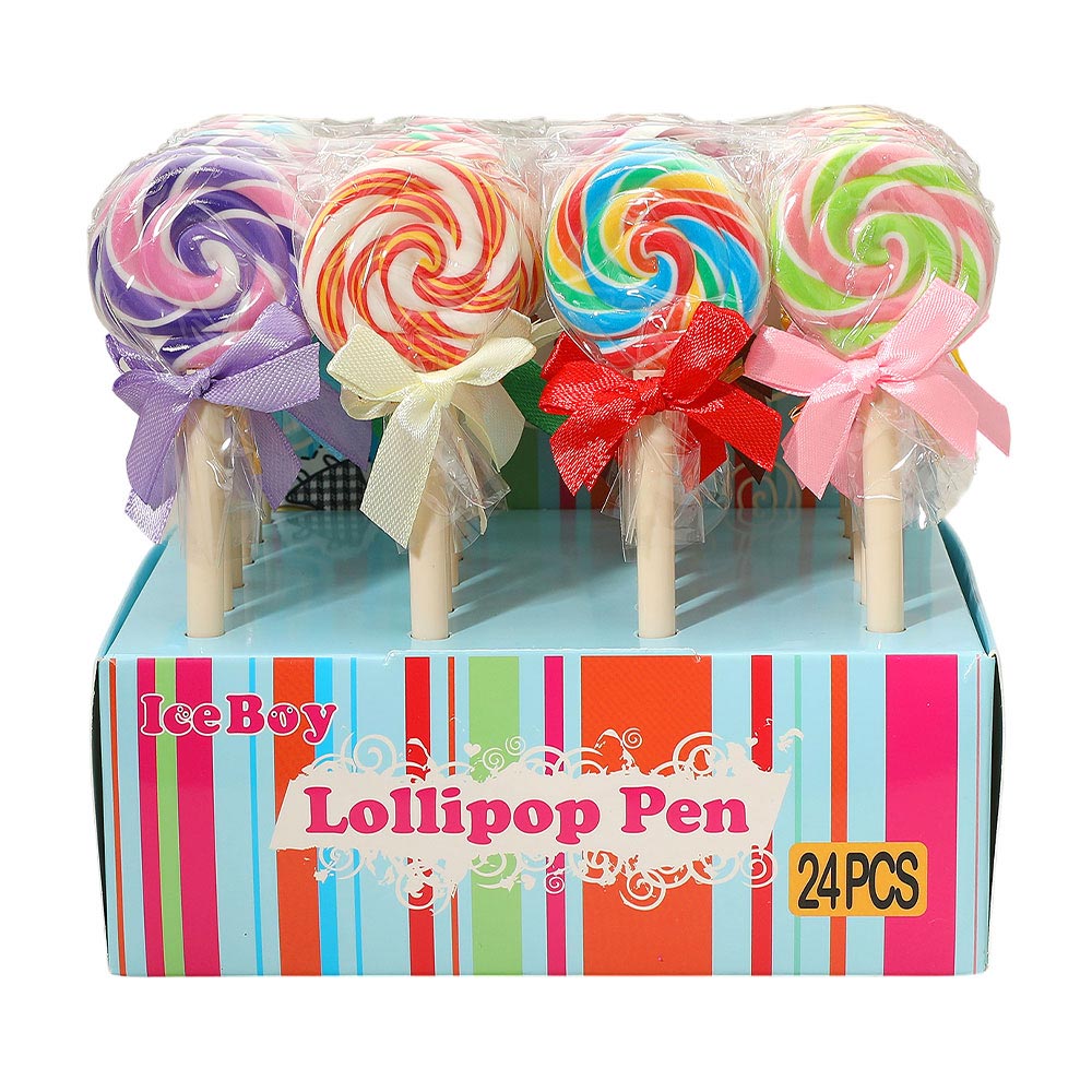 Details • Size : 1.75" X 6" • Fun and colorful 24-pack lollipop pens designed with a swirl candy look and cute ribbon bows. Ideal for party favors, classroom rewards, or desk accessories. These playful novelty pens make writing delightful while adding a sweet touch to gifts and stationery collections.