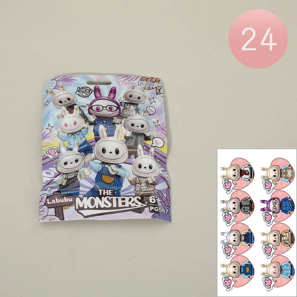 Details • Size : 4.6" X 6.2" • Unwrap the fun with The Monsters Bunny Surprise Mini Figure Pack. Each mystery pack features an adorable character with unique outfits and playful details. Ideal for collectors and fans, these figures bring a whimsical touch to any display, gift, or imaginative collection.