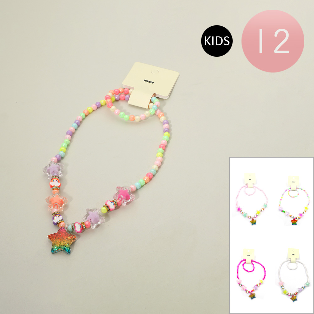 12 SET OF 2 - Kids Star Charm Beaded Jewelry Set