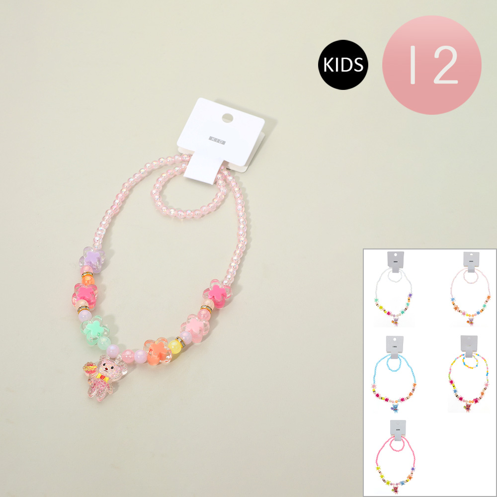 Details • Necklace Size : 9" L / Stretchable • Pendant Size : 1.25" L • Bracelet Size : 0.25" H / Stretchable • Adorable kids’ jewelry set featuring a cute teddy bear charm on a beaded necklace with matching bracelet. Perfect for birthdays, party favors, or daily dress-up fun, this 12-piece pack adds playful charm and makes a sweet accessory set for imaginative little ones.