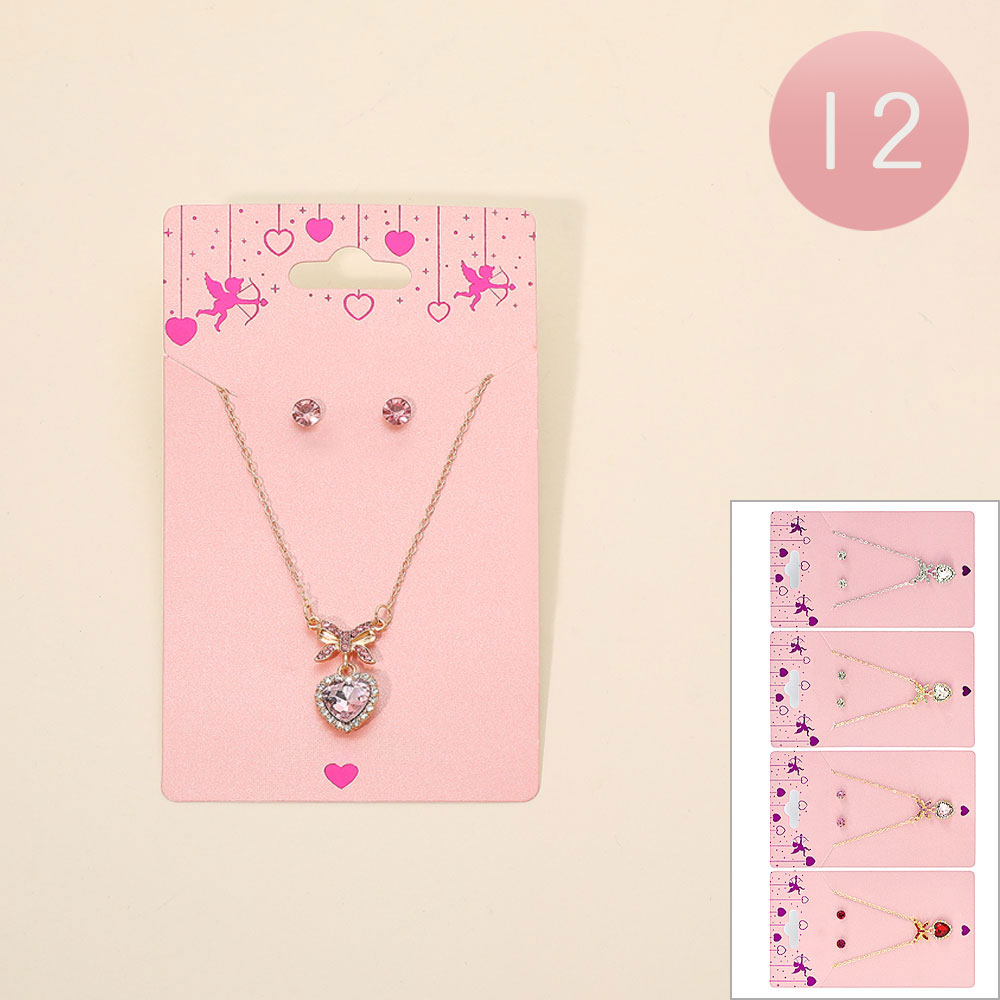Details • Necklace Size : 19" + 3" L • Pendant Size : 0.75" X 1" • Earrings Size : 0.25" L • This necklace and stud earring set features a heart pendant accented with delicate details, paired with matching stud earrings for a coordinated finish. A charming accessory duo suited for casual looks, gifting, party outfits, and everyday wear, adding a playful yet elegant touch.