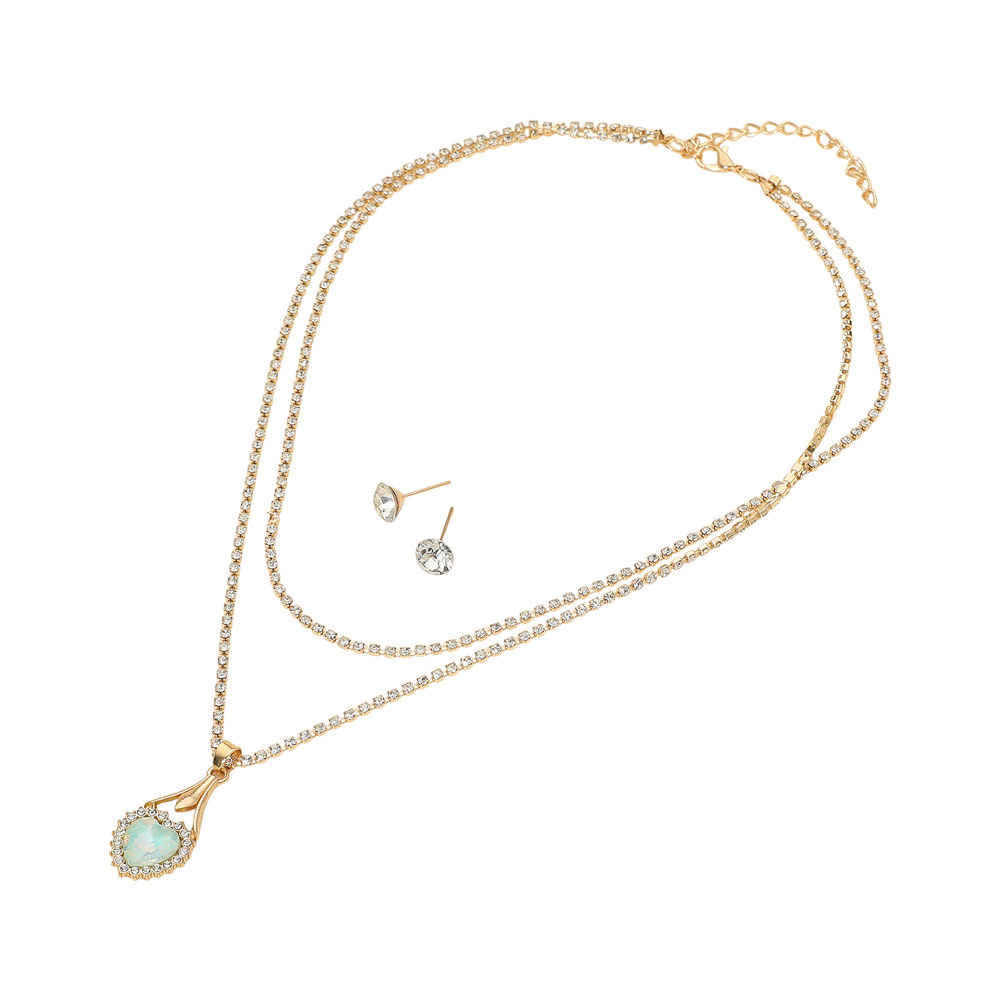 Details • Necklace Size : 16.5" + 2.5" L • Decor Size : 2.5" L • Pendant Size : 0.6" X 1.4" • Earrings Size : 0.3" L • Enhance your look with this teardrop pendant tennis necklace and stud earring set featuring a continuous sparkling chain and an elegant teardrop charm centerpiece. Designed to wear together or separately, it adds refined shine to everyday outfits and special occasions, making it a versatile, gift-ready jewelry set.