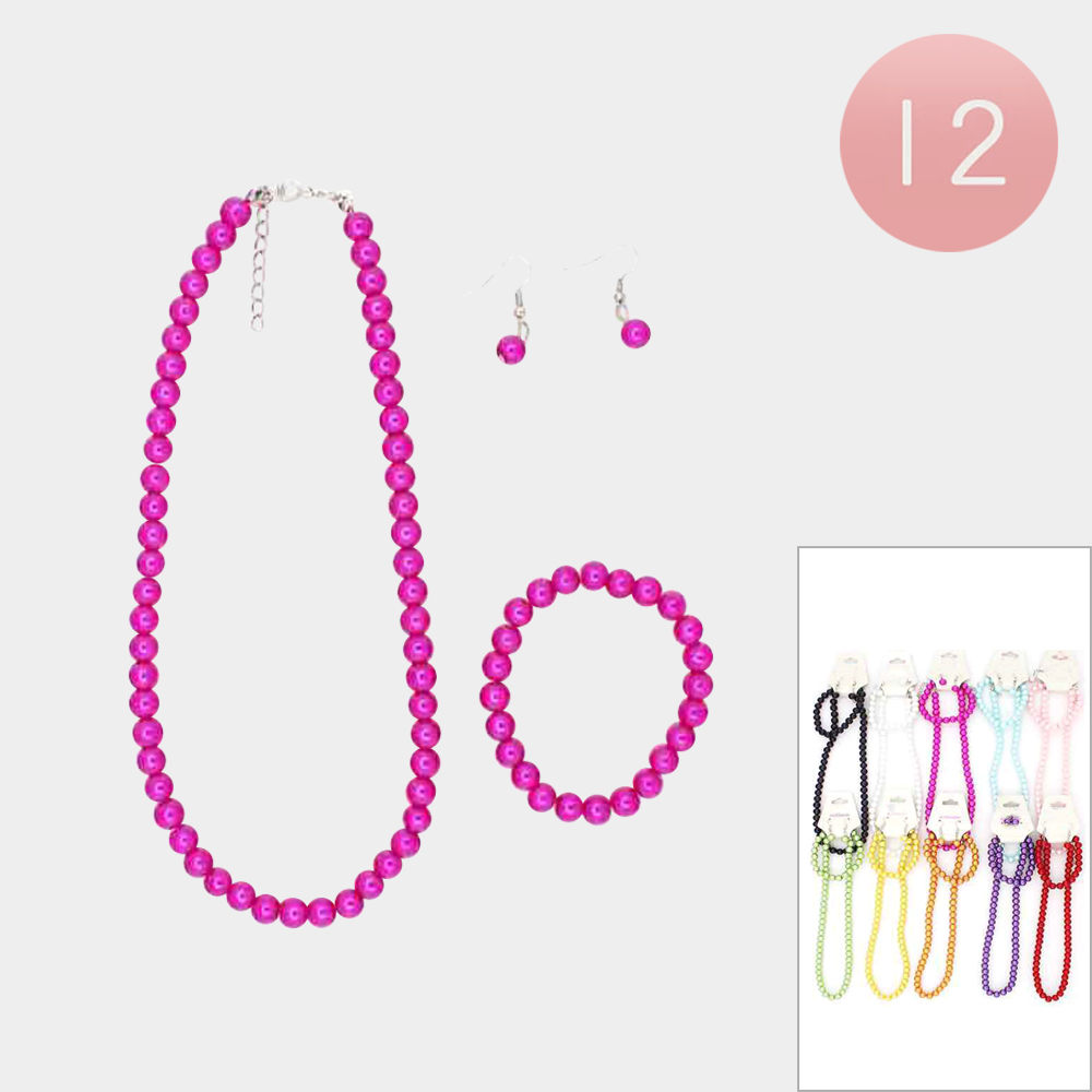 12PCS - Faux Pearl Necklace Bracelet and Earring Set