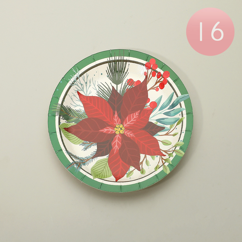 16PCS - NOEL Holiday Wreath Poinsettia Small Paper Plates