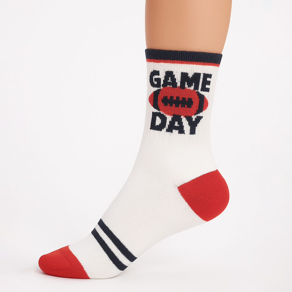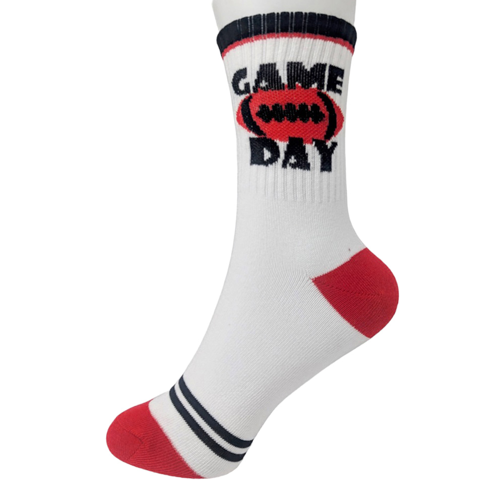 • Step up your team spirit with these gameday crew socks featuring a bold football and “Game Day” design. Perfect for tailgates, sports events, or casual wear, this 10-pack offers comfort and style, making them an essential accessory for every dedicated sports fan.