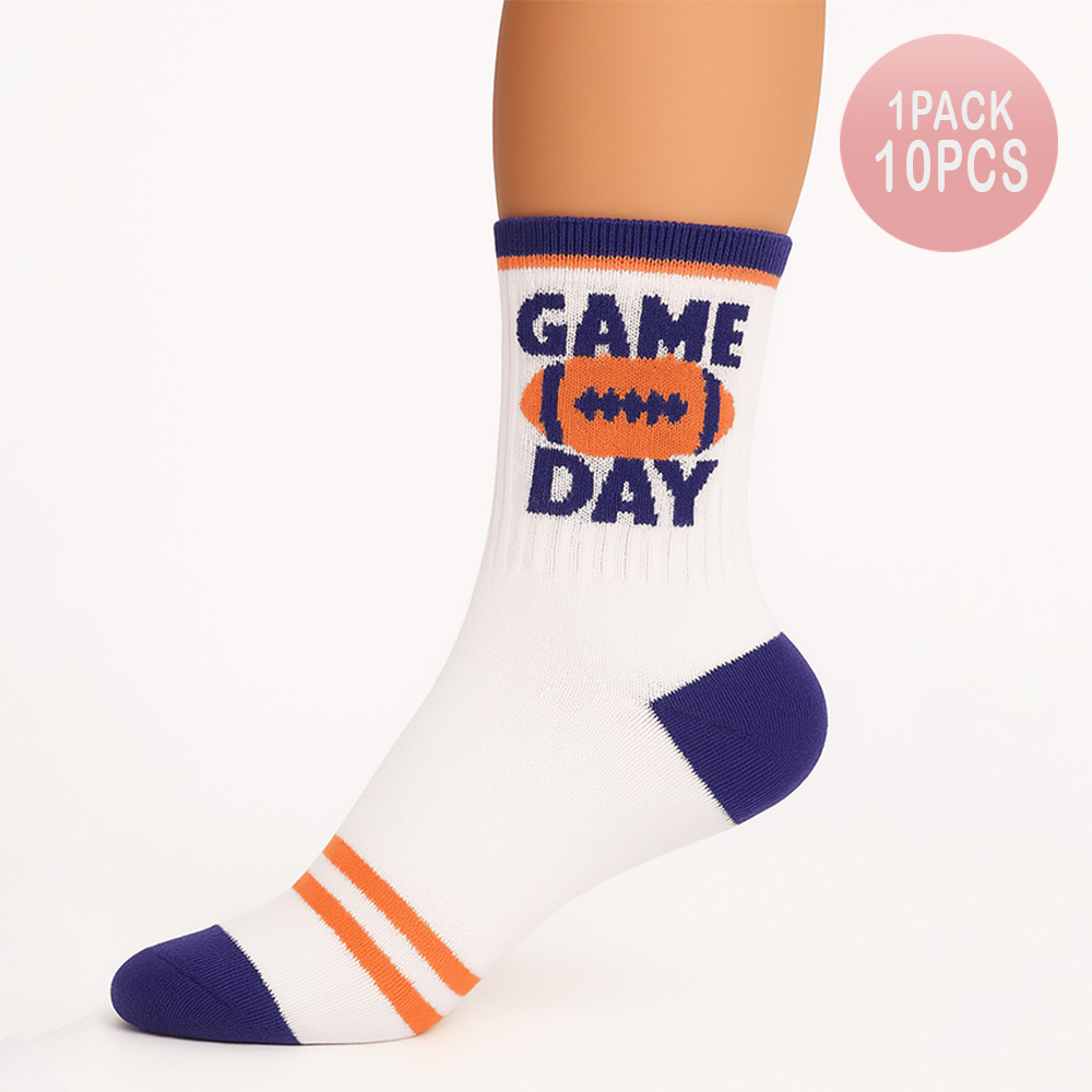 10Pairs - GAMEDAY Football Crew Socks 10Pairs - GAMEDAY Football Crew Socks 10Pairs - GAMEDAY Football Crew Socks