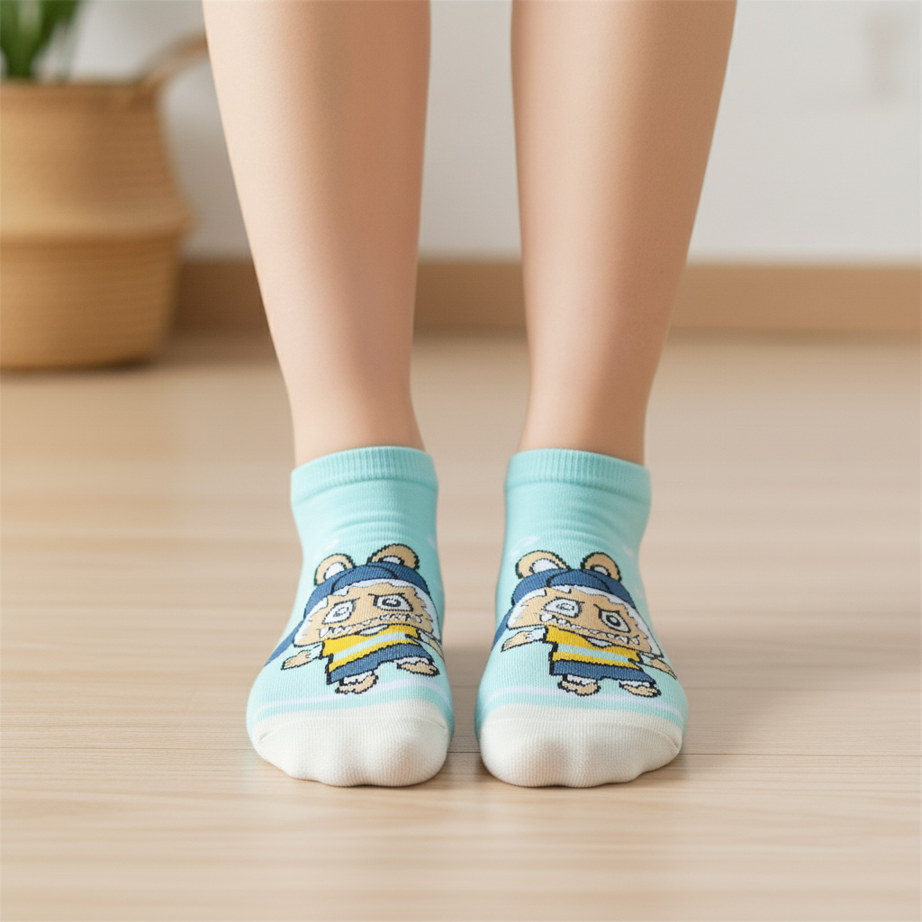 Details • Size : 9 - 11 • Step into fun comfort with this 12-pair pack of cartoon character low-cut socks. Designed with adorable animated patterns, these soft and breathable socks offer a cozy fit and playful charm—perfect for everyday wear, lounging, or adding a cute twist to your casual style.