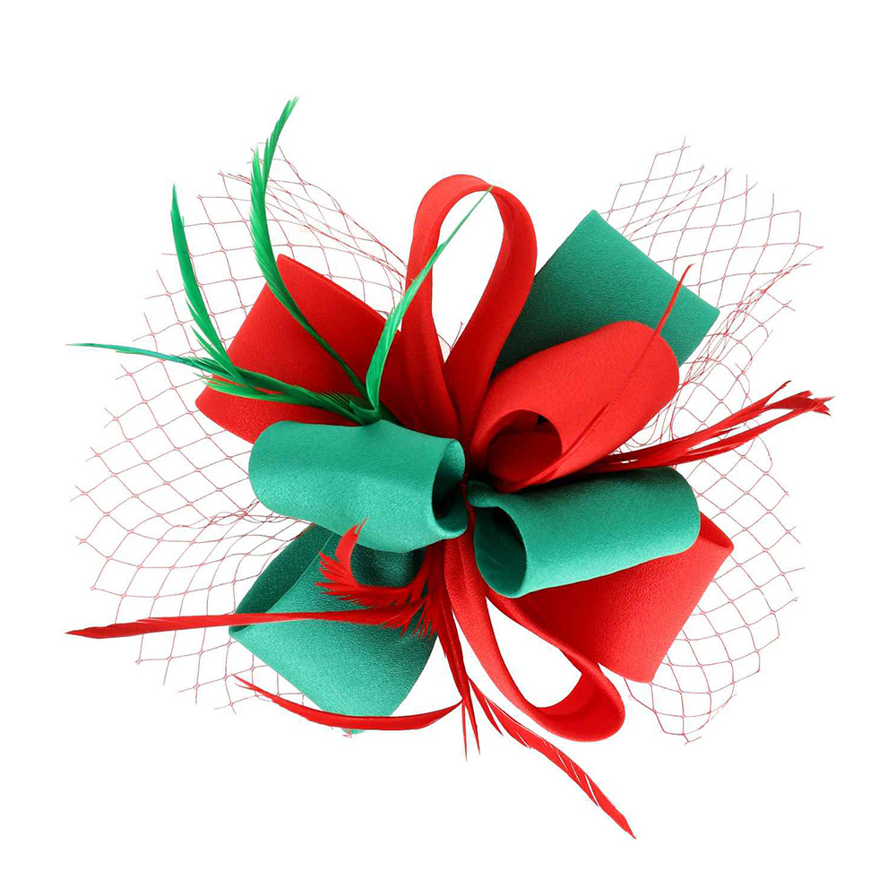 Details • Size : 7" X 8" • Dual : Hair Pinch Clip / Headband • Make a bold statement with this bow and feather mesh fascinator hair clip. Designed with layered loops, airy netting, and delicate feathers, it adds sophistication and flair to any formal event, cocktail party, or festive celebration.