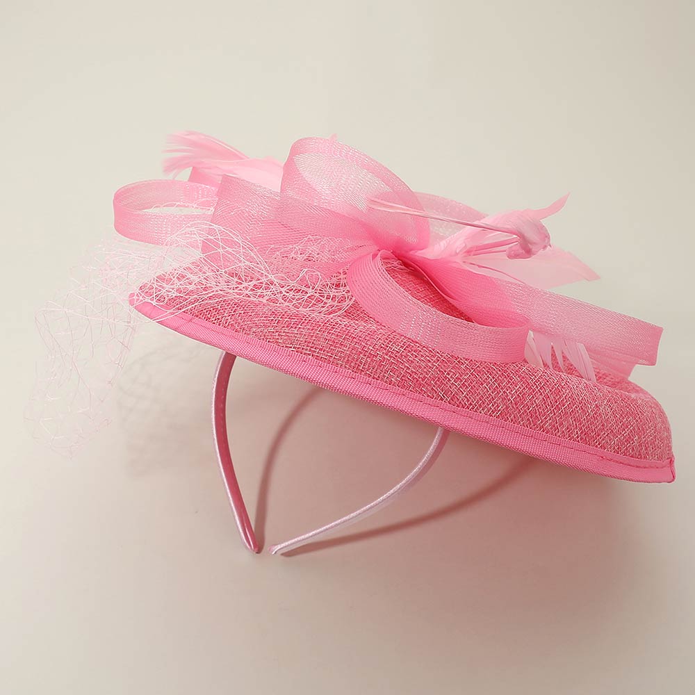 Bow Feather Accented Sinamay Dressy Hat