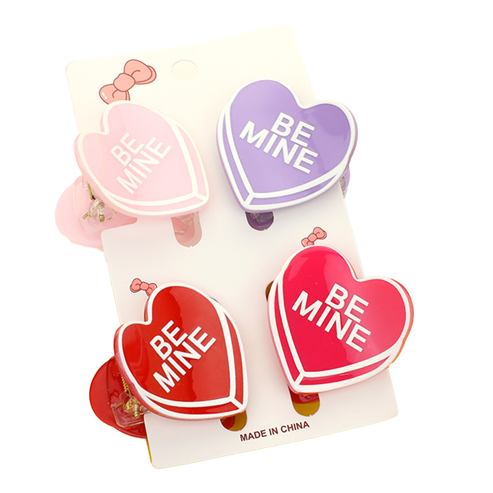 4PCS - BE MINE Message Acetate Heart Hair Claw Clips