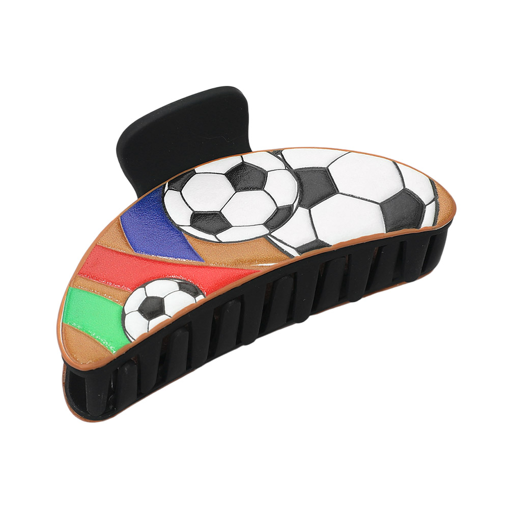• This soccer theme hair claw clip features a bold sports-inspired design that adds playful personality to everyday hairstyles. Designed for secure grip and easy styling, it’s perfect for game day outfits, team spirit looks, casual wear, or gift shops. A fun accessory for fans, athletes, and trend-driven hair collections.