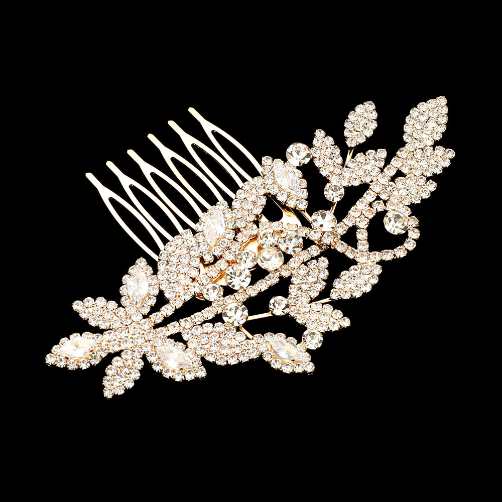CZ Stone Paved Leaf Hair Comb CZ Stone Paved Leaf Hair Comb