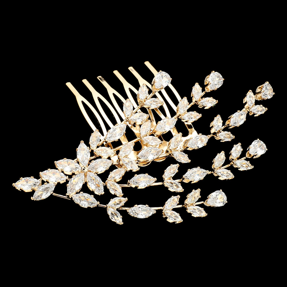 Marquise Teardrop CZ Stone Leaf Embellished Branch Hair Comb