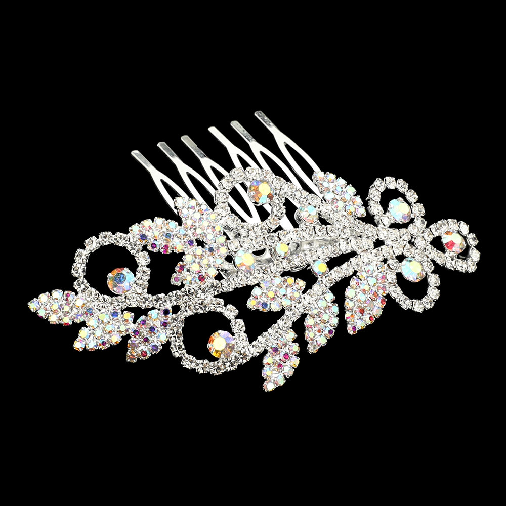 • Rhinestone floral bridal hair comb with intricate leaf and swirl design, sparkling with brilliance. Perfect for weddings, proms, and formal events, this elegant accessory enhances any updo with timeless beauty.