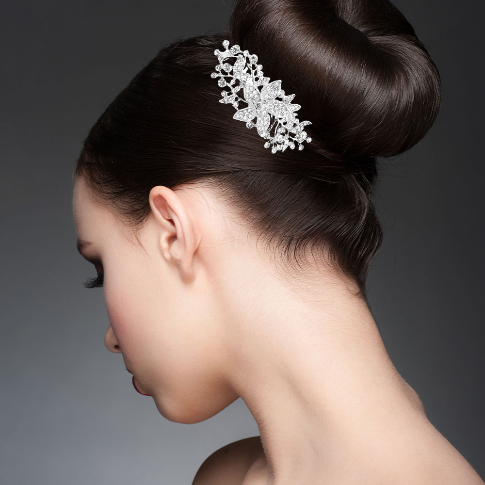 • Enhance your hairstyle with this sparkling floral crystal hair comb, crafted to add a touch of glamour and grace. Featuring dazzling crystal blossoms and delicate detailing, it’s perfect for weddings, parties, or elegant occasions, offering a timeless accent that shines beautifully.