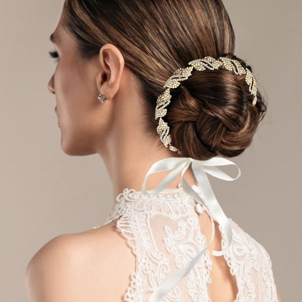 Details • Size : 11" X 0.5" • A Pair Bobby Pin Included • Elegant crystal leaf vine bridal hair vine headpiece designed with sparkling rhinestones in a flowing pattern. Flexible and lightweight, perfect for weddings, proms, and special occasions to enhance any hairstyle.
