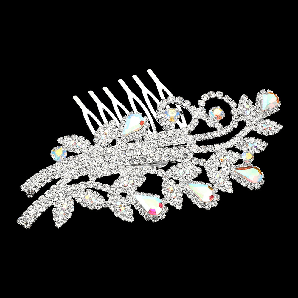 Teardrop Stone Cluster Rhinestone Paved Branch Hair Comb