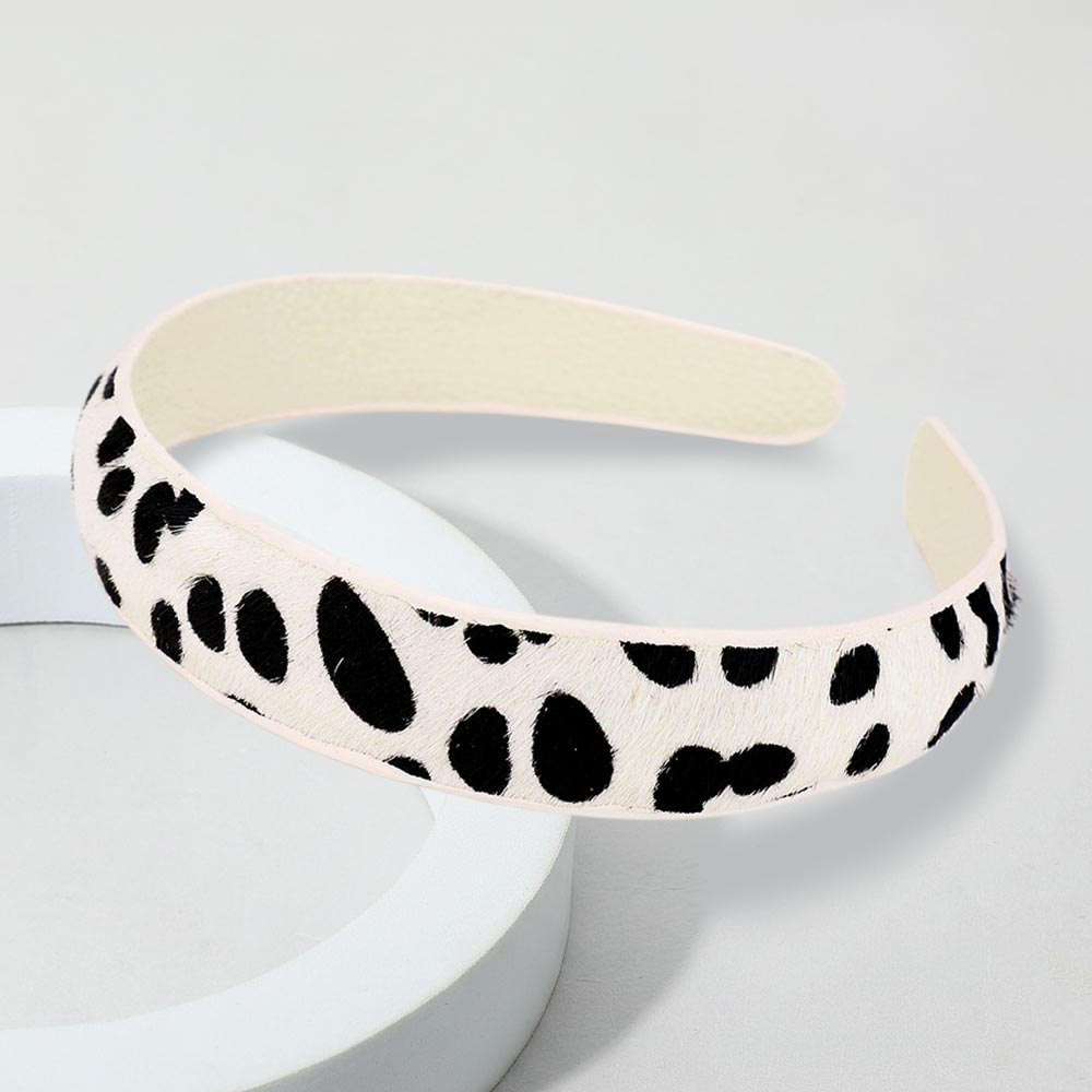 Details • Size : 1" H • Stand out with this hair-on hide animal print headband featuring a natural textured finish and comfortable design. Perfect for daily wear, festivals, or special occasions, it combines rustic charm with modern flair for a versatile fashion accessory.