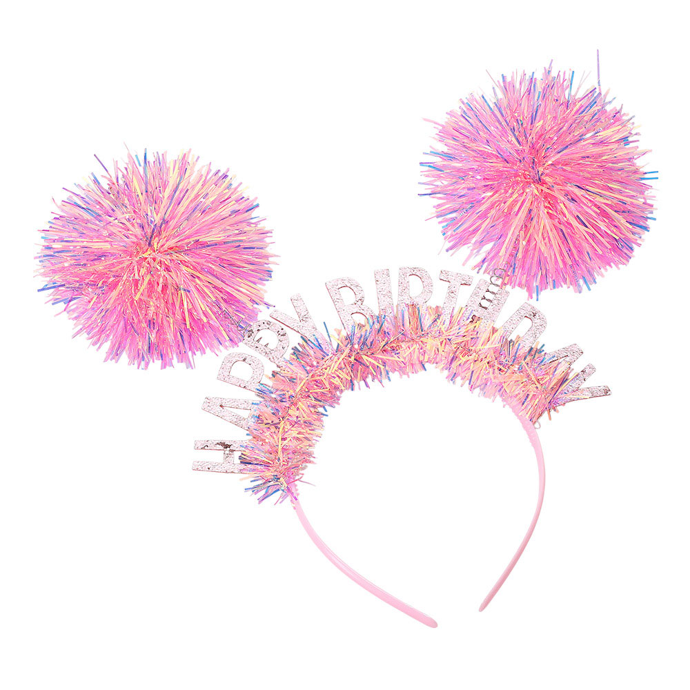 HAPPY BIRTHDAY Double Tinsel Pom Pom Headband