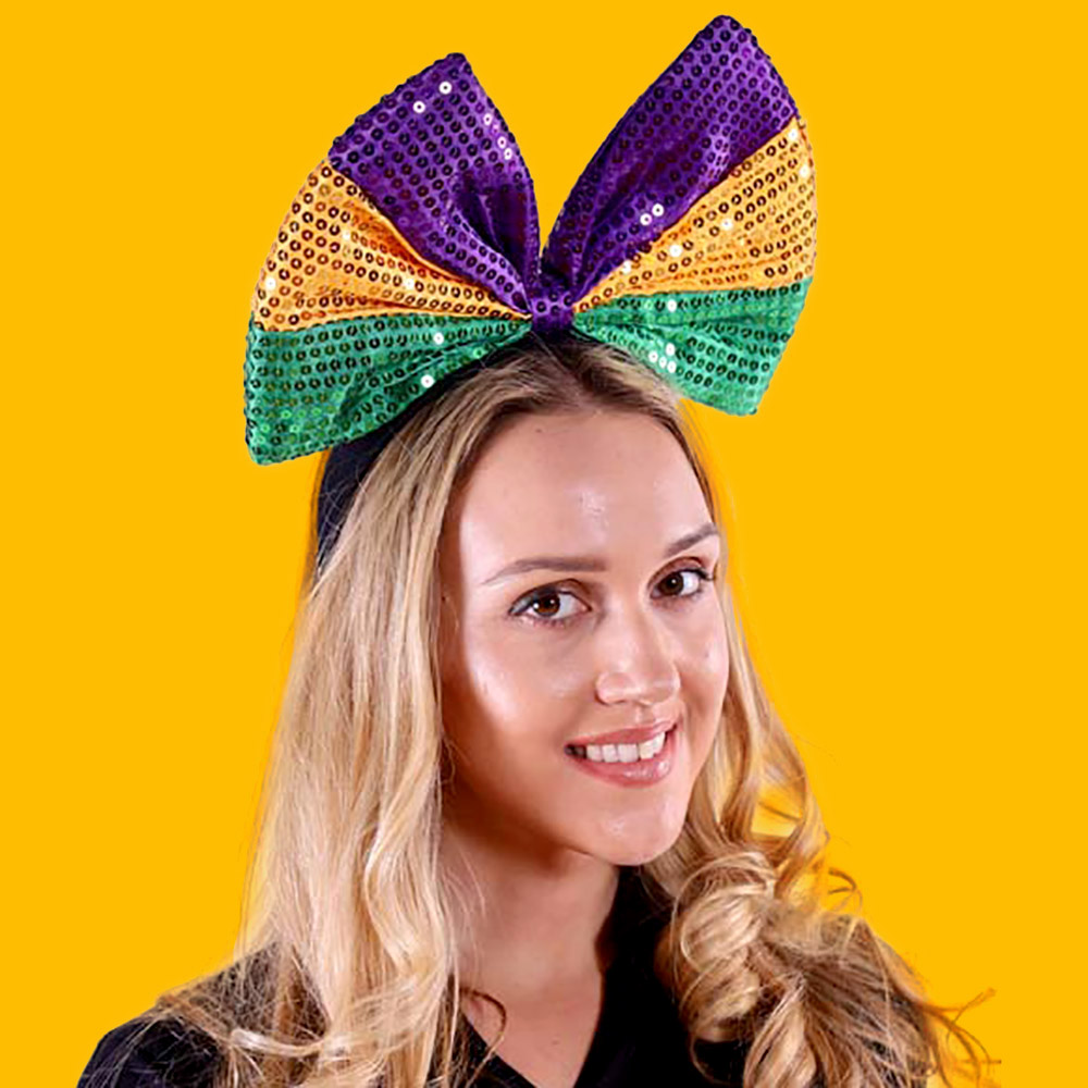 Details • Size : 8.5" H • Eye-catching bow headband designed for festive celebrations and themed events. Features a bold oversized silhouette that adds instant flair to party outfits, parades, and group gatherings. Lightweight and comfortable for extended wear while making a playful statement.
