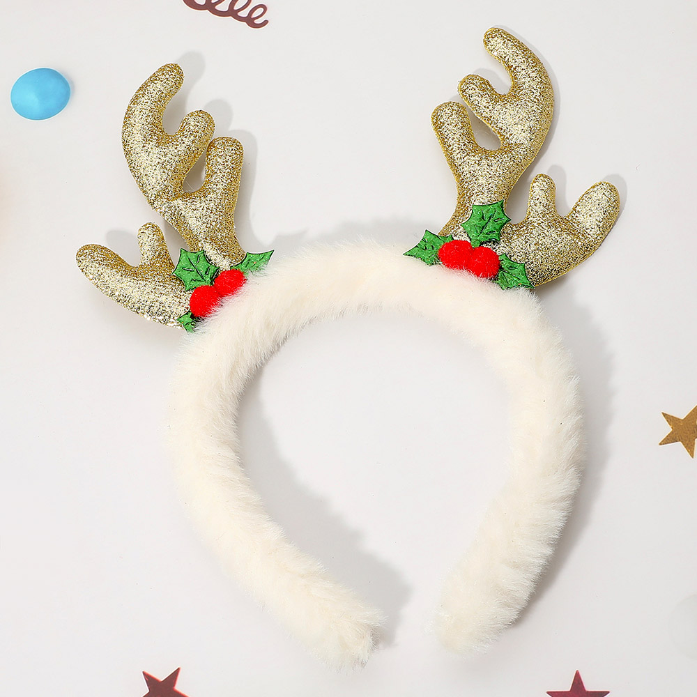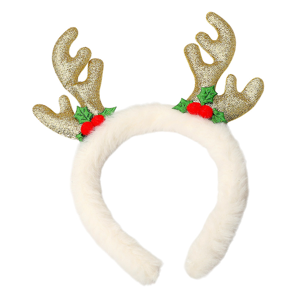 Details • Size : 4.5" H • Shine bright this holiday season with this sparkling reindeer antler headband featuring festive holly and berry details. Perfect for Christmas parties, family gatherings, or holiday photos, this soft and whimsical accessory adds a joyful touch to any festive celebration.