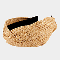 Pattern Detailed Solid Faux Leather Knot Burnout Headband