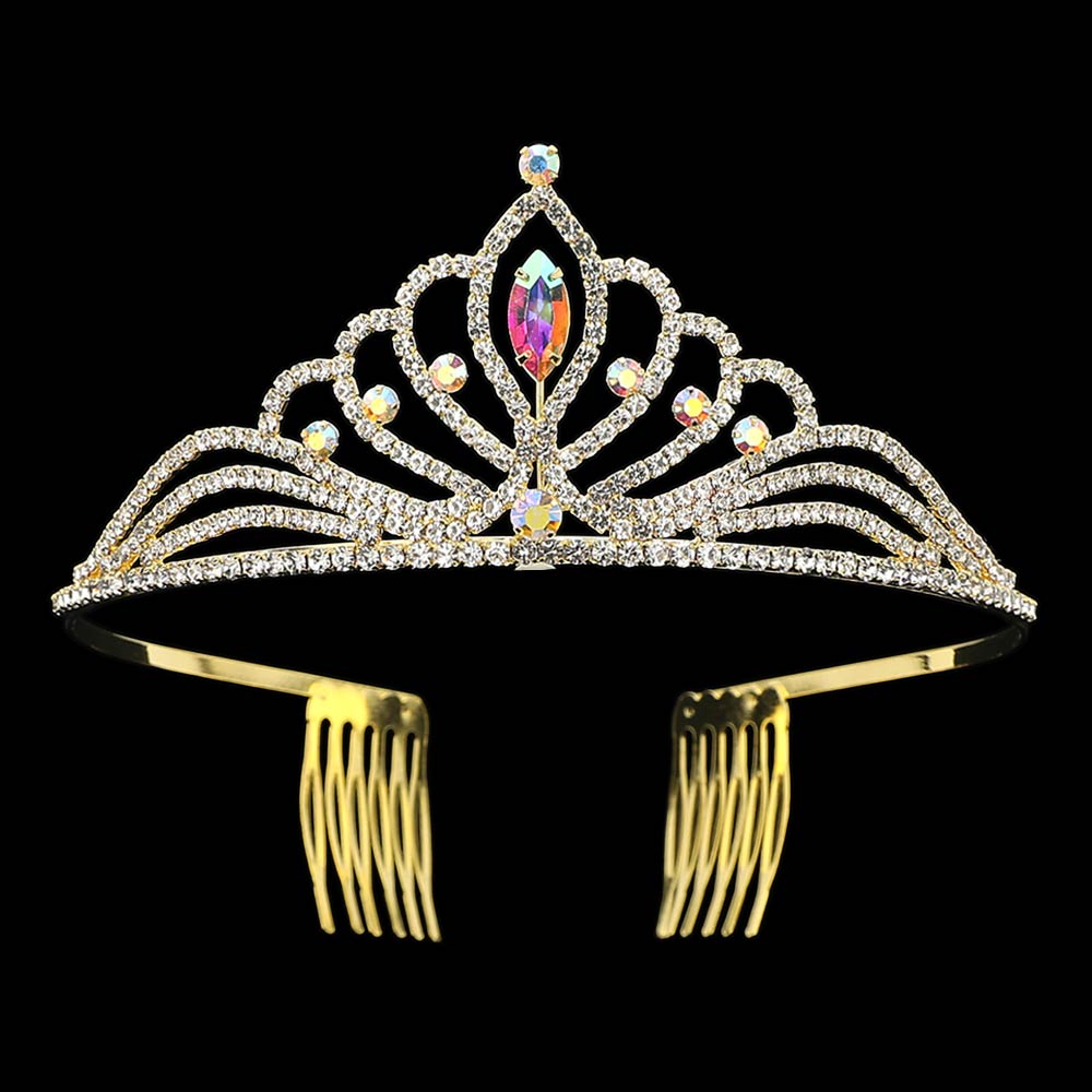 Marquise Stone Center Rhinestone Pave Princess Tiara