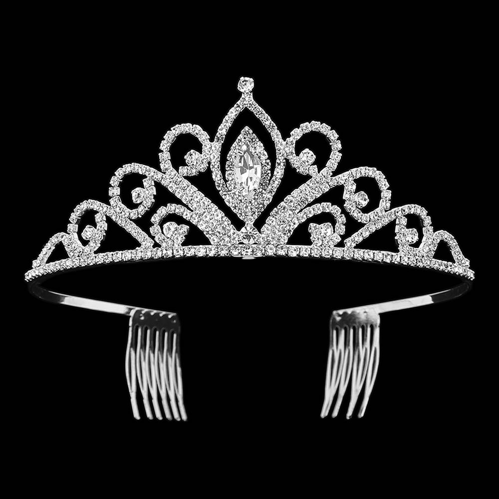Marquise Stone Center Rhinestone Pave Princess Tiara