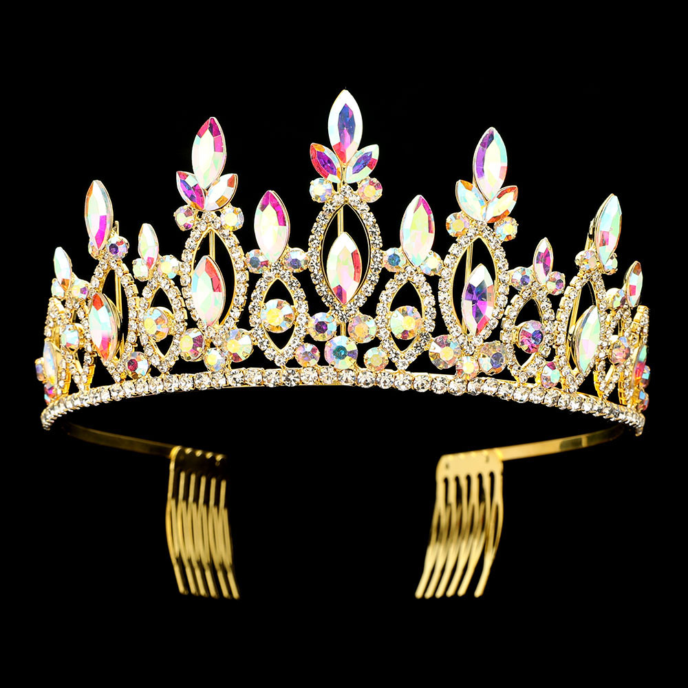 Marquise Stone Cluster Embellished Rhinestone Paved Crown Princess Tiara Marquise Stone Cluster Embellished Rhinestone Paved Crown Princess Tiara