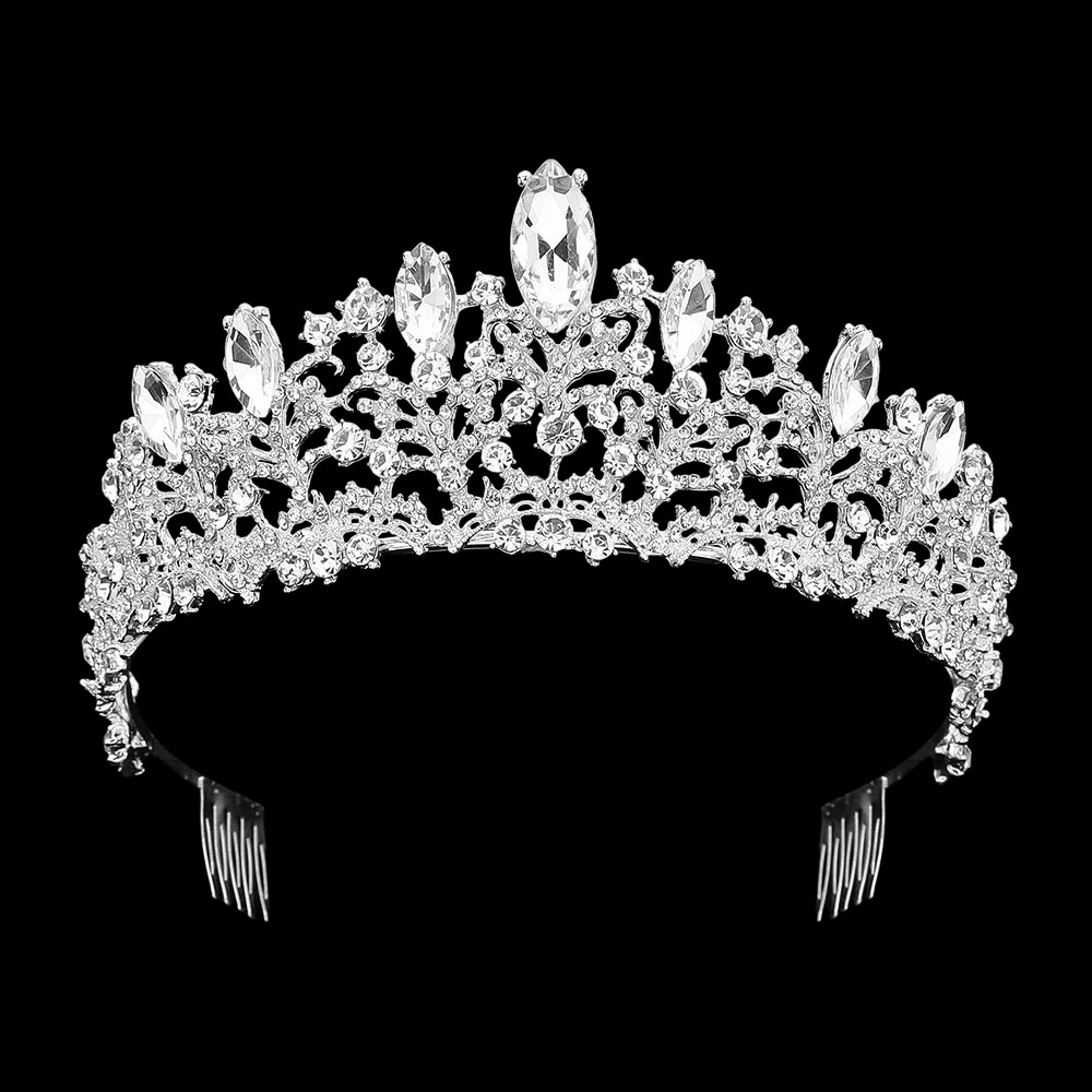 • This ornate tiara features a refined leaf-inspired design accented with brilliant crystal detailing for a radiant, regal finish. Ideal for formal events, weddings, or photoshoots, it adds a luxurious touch that enhances any special-occasion look with timeless elegance and sparkle.