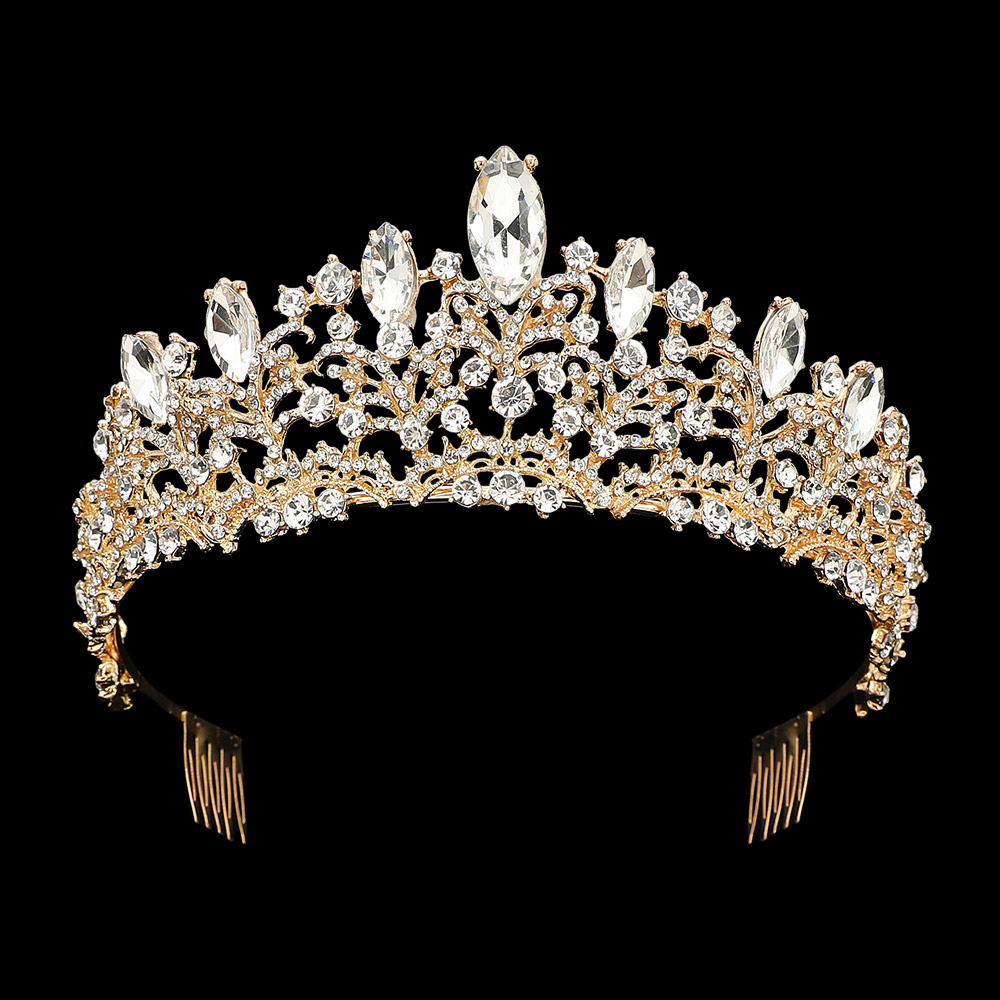 • This ornate tiara features a refined leaf-inspired design accented with brilliant crystal detailing for a radiant, regal finish. Ideal for formal events, weddings, or photoshoots, it adds a luxurious touch that enhances any special-occasion look with timeless elegance and sparkle.
