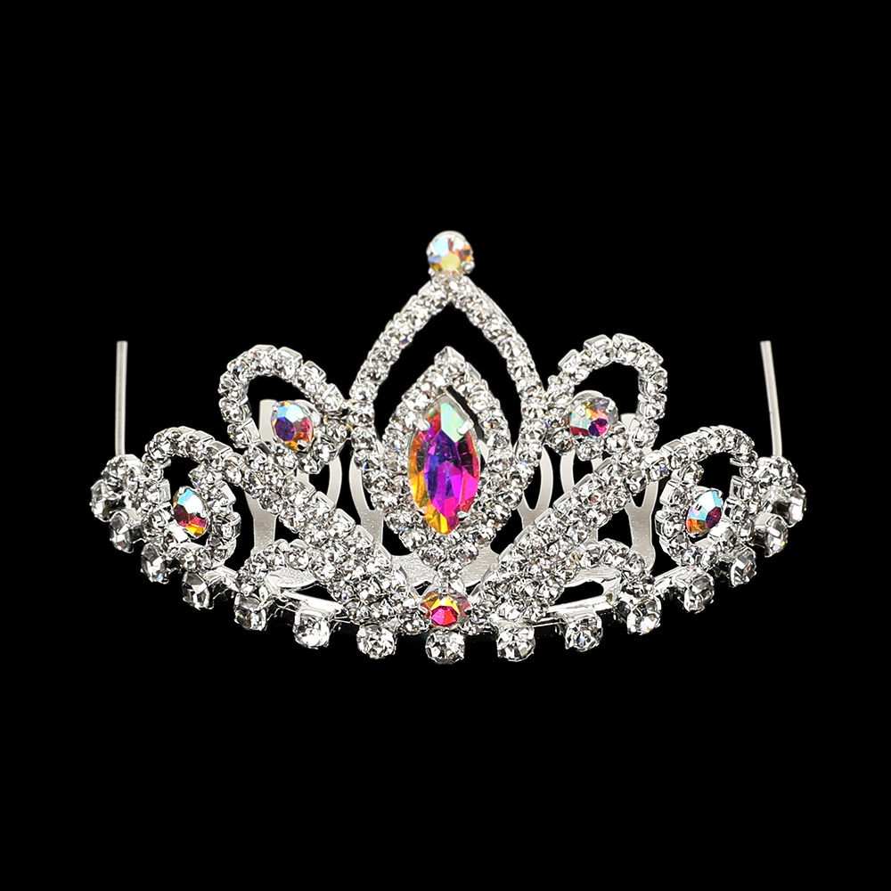 Marquise Stone Pointed Rhinestone Paved Princess Mini Tiara