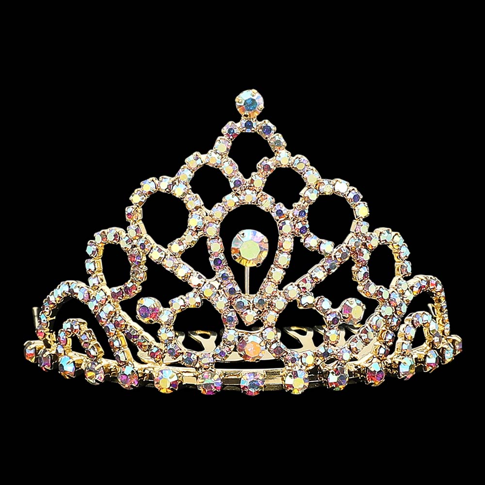 Details • Size : 2" H • Graceful tiara crown designed with shimmering crystal details for a refined and regal look. Ideal for weddings, pageants, proms, quinceañeras, birthdays, and photo shoots. Adds a timeless statement touch to formal outfits and memorable celebrations.