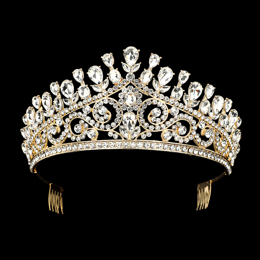 Teardrop Oval Stone Cluster Embellished Regal Scrollwork Queen Tiara Teardrop Oval Stone Cluster Embellished Regal Scrollwork Queen Tiara